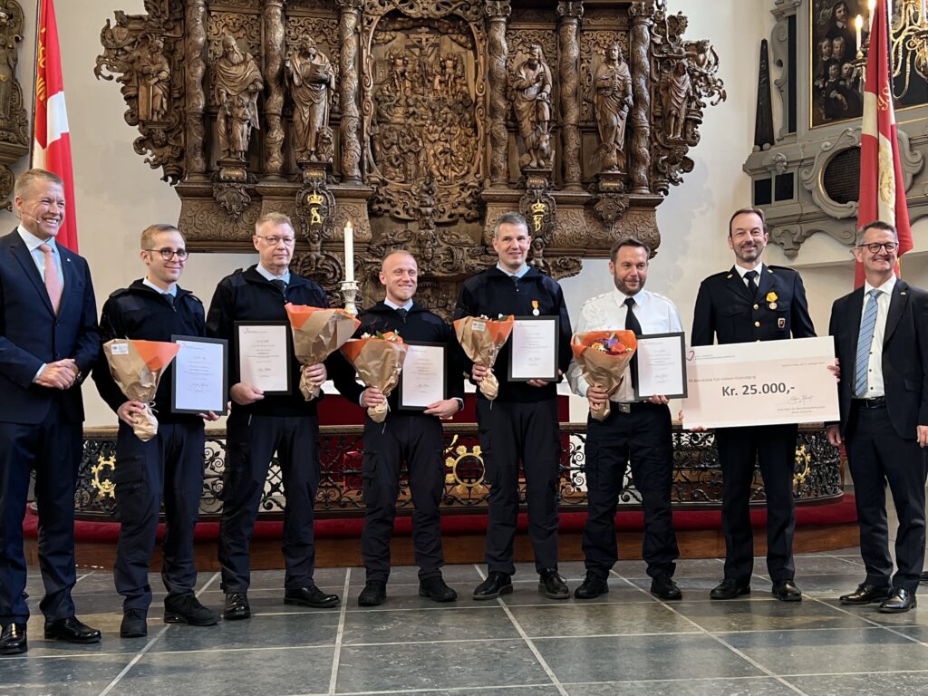 Prisen går til fem brandfolk – en indsatsleder fra Beredskab Fyn og fire deltidsfolk fra Falck i Glamsberg bestående af en holdleder og tre brandmænd.